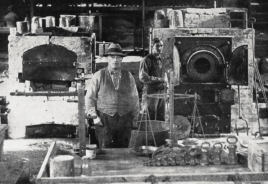 The furnace for retorting the amalgam to secure the pure gold - Blackwater mine, Waiuta.1933.