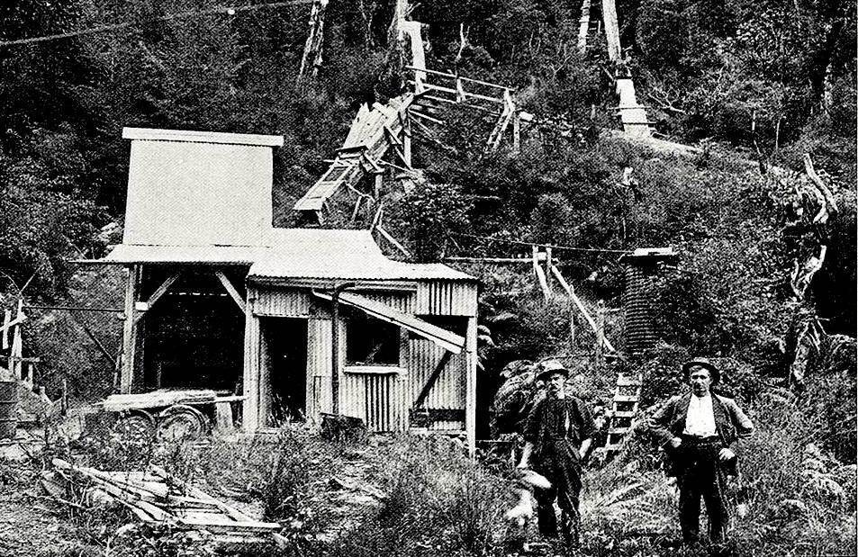 West Coast New Zealand History (12th Apr 2026). Two miners on site where the Homer Gold Mine battery adjoins the Blackwater Mine.Waiuta. 1934.. In Website West Coast New Zealand History. Retrieved 13th Apr 2026 20:08, from https://westcoast.recollect.co.nz/nodes/view/35990