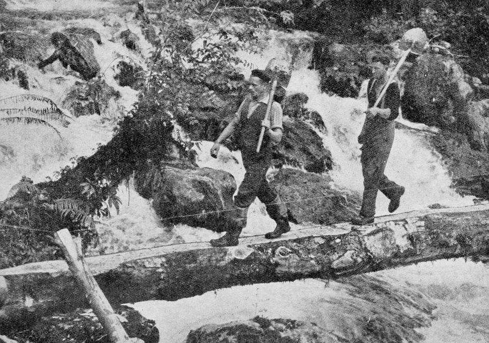 West Coast New Zealand History (16th Apr 2026). Workers crossing a makeshift bridge - on the constuction of the Hollyford-Okuru road. 1939.. In Website West Coast New Zealand History. Retrieved 17th Apr 2026 10:10, from https://westcoast.recollect.co.nz/nodes/view/36009