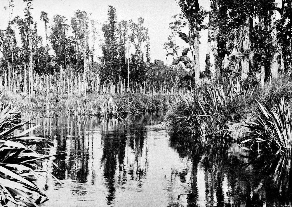 A Kahikatea (white pine) swamp, Mahinapua, West Coast.1905.