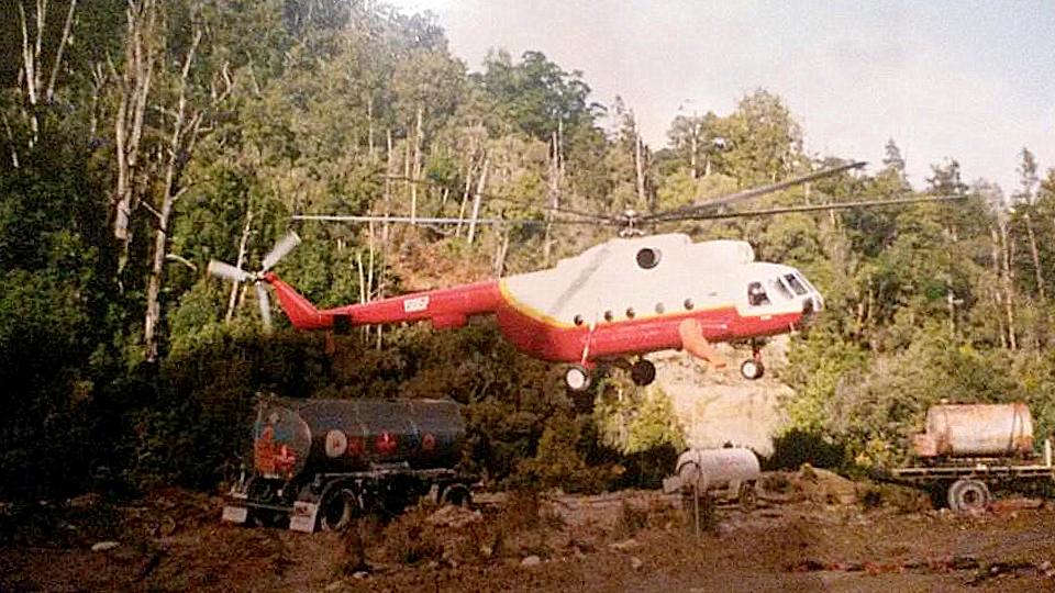 Mil mi-8 helicopter used for heli logging that crashed near Hokitika.1993.